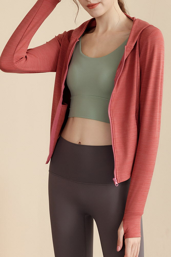 Whether layered over a sports bra for training or styled casually for daily errands, this versatile zip hoodie blends function and modern femininity in one refined piece.