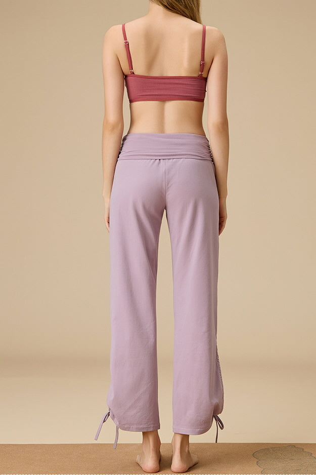 The Aruna Gathered Flow Pants are designed for effortless movement and soft sculpting comfort. Featuring a wide-leg silhouette with adjustable side ties at the hem, these pants bring fluid elegance to yoga, studio practice, or relaxed everyday wear.