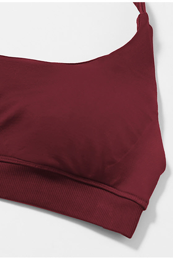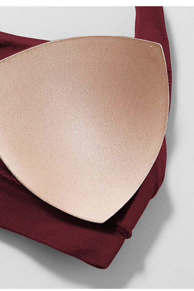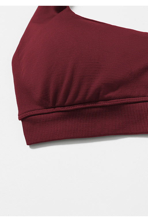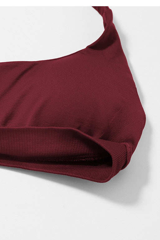 The wide halter straps distribute pressure comfortably across the shoulders, while the seamless ribbed band provides a secure fit without digging in.